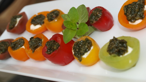 - Bruschetta topped with roasted sunblushed tomatoes and ricotta cheese