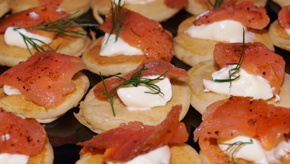 - Buckwheat blinis with smoked salmon and lemon crème fraiche